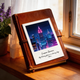 On top of a leather planner or journal for a creative desk aesthetic